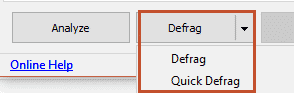 Jeg kan nu vælge “Defrag” på knappen “Defrag” enten almindelig defrag eller quick defrag.
