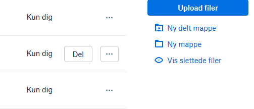 En anden metode til at dele er at holde musen ud til højre for enten en fil eller en mappe. Så vises knappen “Del”.